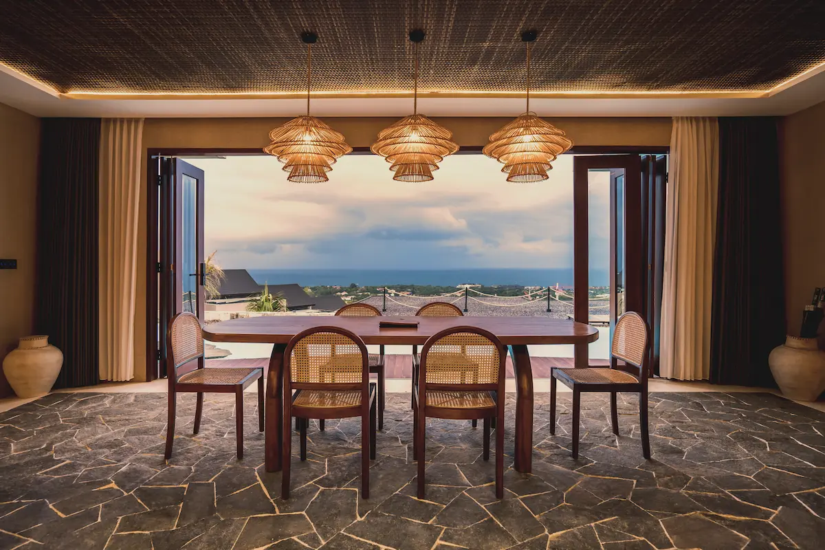 Expect contrasting textures of cane, macramé, and wood that come together to form the most dreamy boho heaven. Your stay is complete with alfresco dining and an outdoor Tiki bar, perfect for ending the day with a cocktail and sunset views. Be sure to book yourself a restorative yoga session as well, and of course, don’t miss out on surfing on the exotic, semi-private Padang Padang beach right at your doorstep!