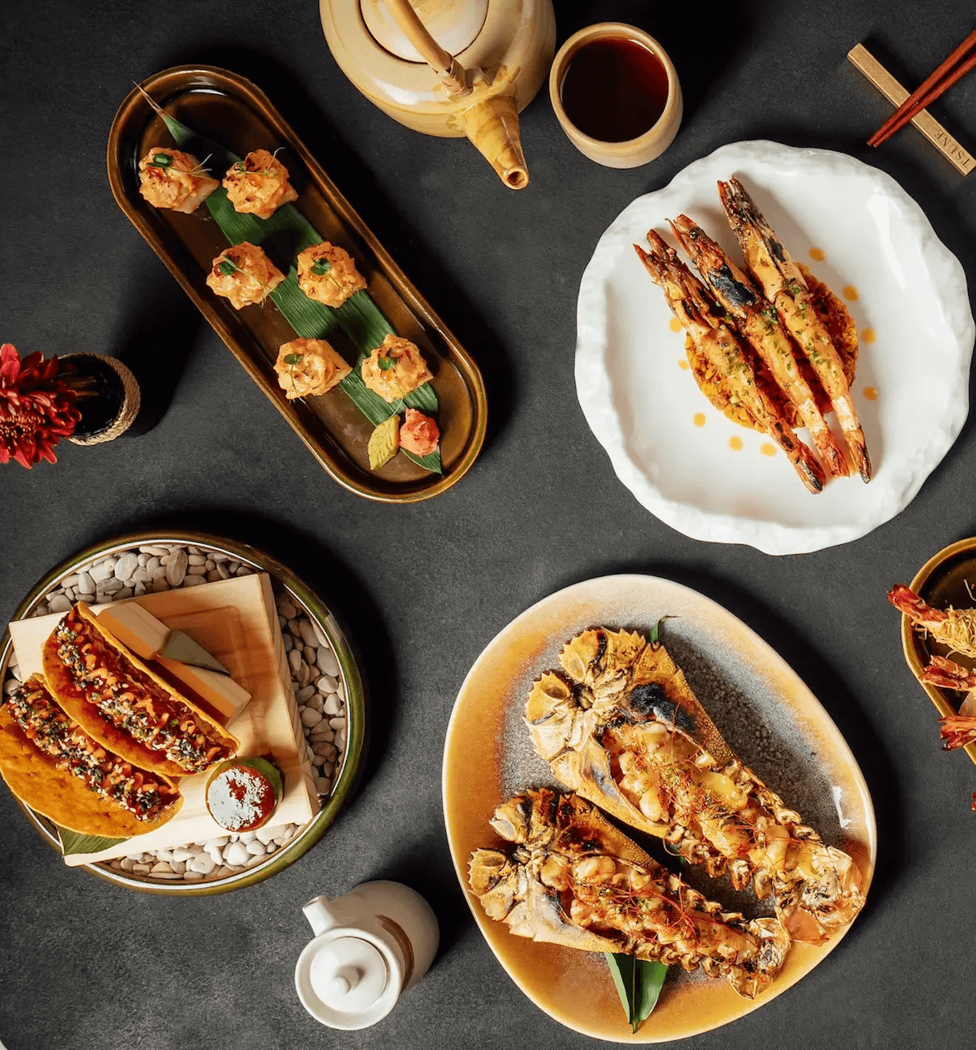 Tsune Bali reimagines Japanese dining with two standout locations in Sanur and Uluwatu, each offering a unique culinary journey. In Sanur, guests can enjoy Indonesia’s first floating sushi experience, where meticulously crafted sushi glides along a serene waterway, capturing the essence of Kanazawa’s culinary traditions.